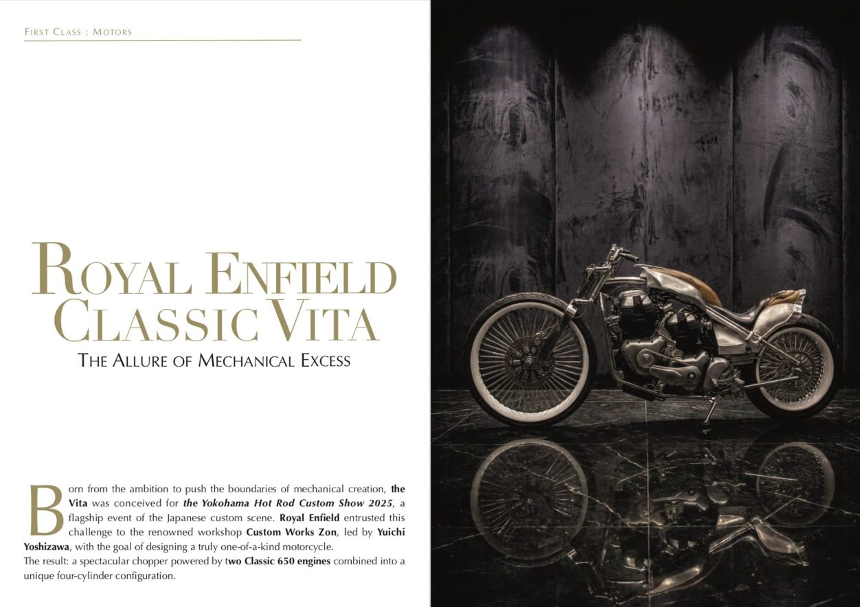 Born from the ambition to push the boundaries of mechanical creation, the Vita was conceived for the Yokohama Hot Rod Custom Show 2025, a flagship event of the Japanese custom scene. Royal Enfield entrusted this challenge to the renowned workshop Custom Works Zon, led by Yuichi Yoshizawa, with the goal of designing a truly one-of-a-kind motorcycle...