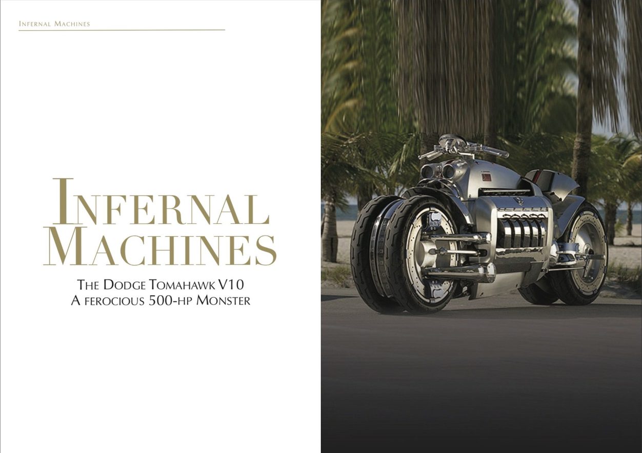In the Pantheon of the Most Diabolical Machines Ever Conceived, the Dodge Tomahawk V10 Holds a Prime Spot.This conceptual motorcycle, the product of the bold imagination of the American manufacturer Dodge, transcends all mechanical and stylistic conventions. A true chimera of both the automotive and motorcycle industries, the Tomahawk has continued to fascinate, astonish — and even intimidate — enthusiasts and engineers alike...
