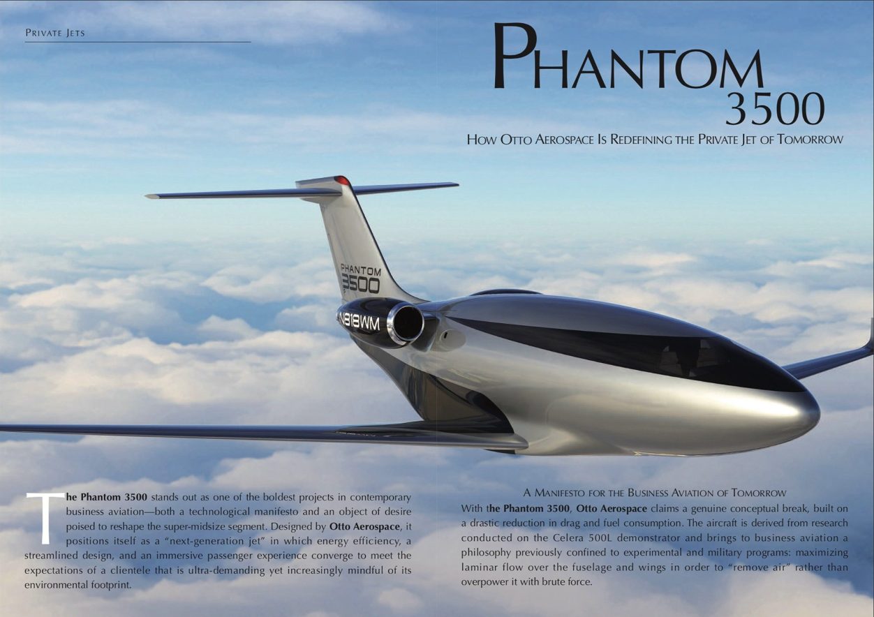 The Phantom 3500 stands out as one of the boldest projects in contemporary business aviation—both a technological manifesto and an object of desire poised to reshape the super-midsize segment. Designed by Otto Aerospace, it positions itself as a “next-generation jet” in which energy efficiency, a streamlined design, and an immersive passenger experience converge to meet the expectations of a clientele that is ultra-demanding yet increasingly mindful of its environmental footprint...