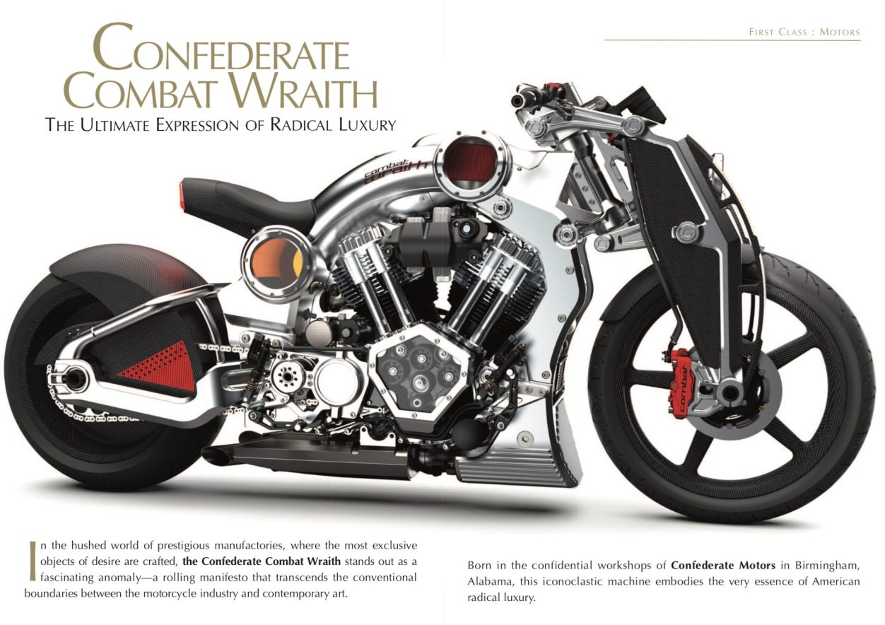 In the hushed world of prestigious manufactories, where the most exclusive objects of desire are crafted, the Confederate Combat Wraith stands out as a fascinating anomaly—a rolling manifesto that transcends the conventional boundaries between the motorcycle industry and contemporary art...