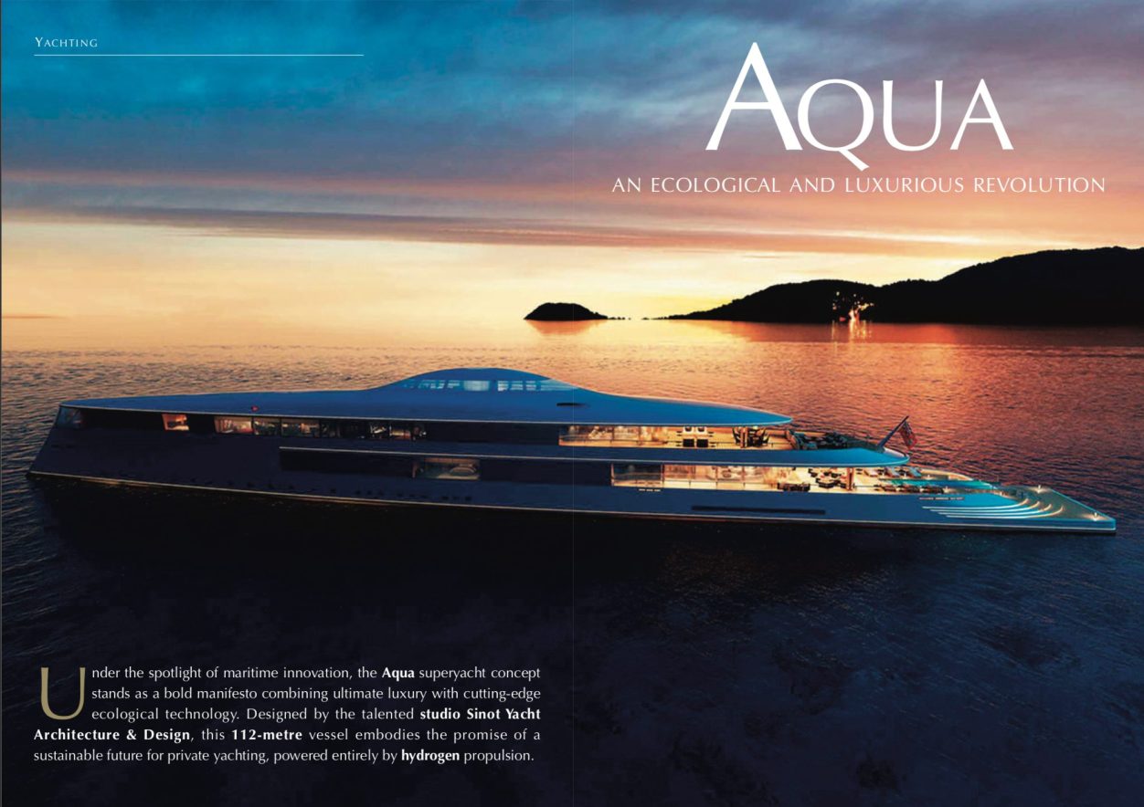 Under the spotlight of maritime innovation, the Aqua superyacht concept stands as a bold manifesto combining ultimate luxury with cutting-edge ecological technology. Designed by the talented studio Sinot Yacht Architecture & Design, this 112-metre vessel embodies the promise of a sustainable future for private yachting, powered entirely by hydrogen propulsion...
